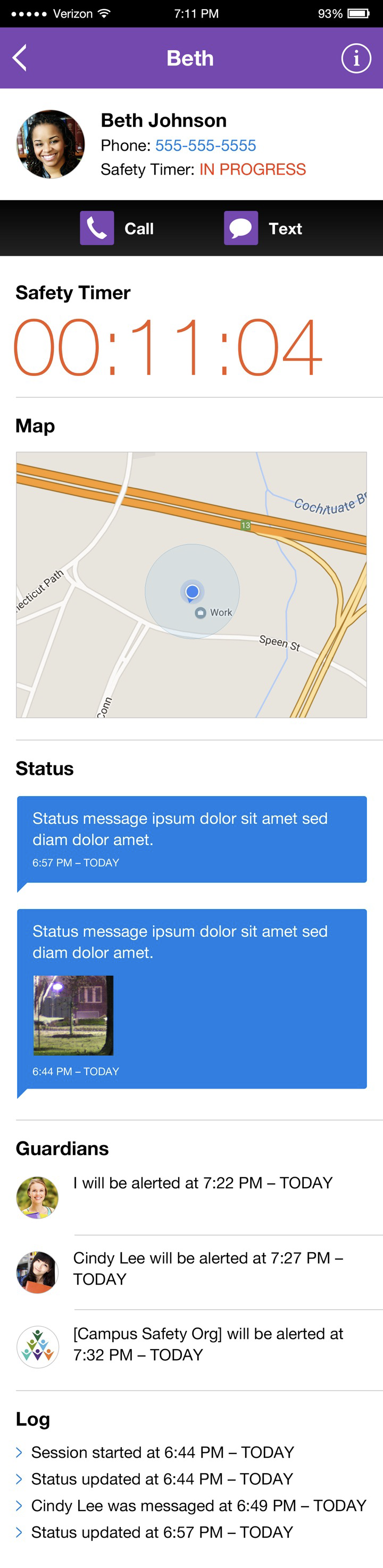 If a student or employee is walking alone at night or in an unsafe place, or if a lone worker is at an unfamiliar place, the custom-branded app allows users to have their trip supervised by trusted friends, the campus/company security team, or both. These “guardians” can view the user’s route, chat, and will be alerted if the user’s timer expires.