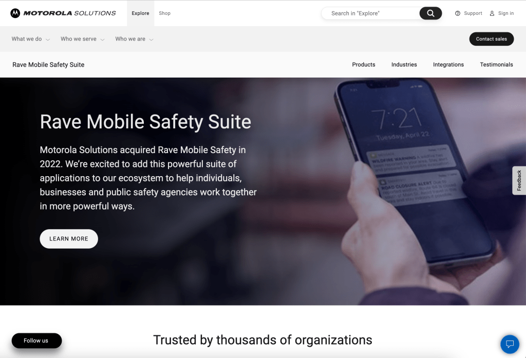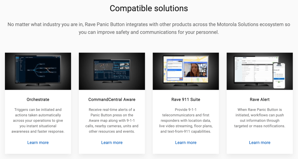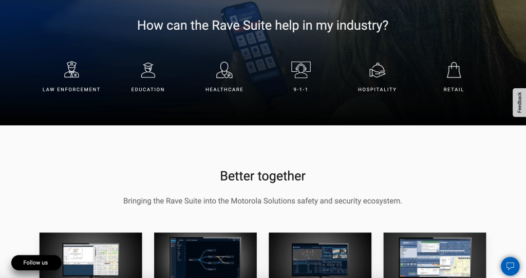 In the context of the Motorola Solutions brand, Rave is referred to as the Rave Suite. Since MSI’s history is grounded more in hardware than software, Rave is shown as a complimentary suite to the company’s range of products, including two-way radios, software applications, and communication infrastructure.