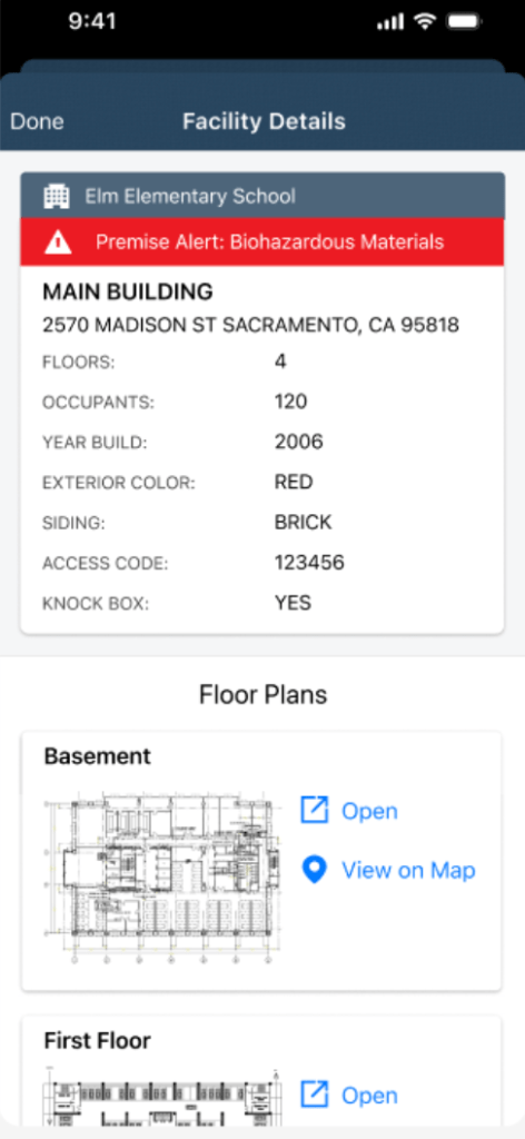 En route to a scene, responders receive critical information about the situation, location, relevant facility details, and most importantly, operational protocols based on the emergency type and boiled down to their individual tasks. This helps not only in response but in reporting and incident analysis after the fact.