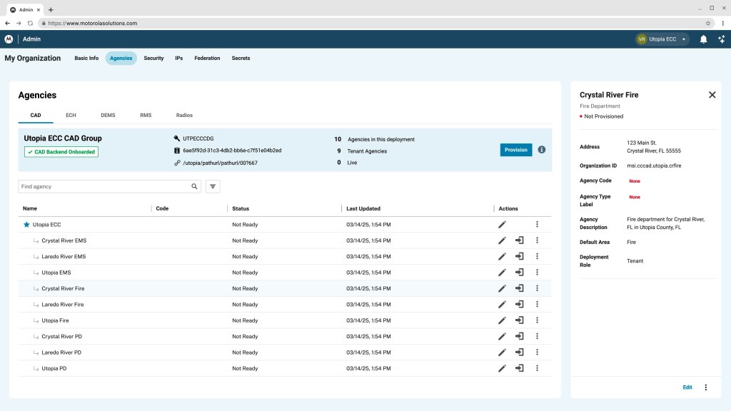 Fig 5. Shows how a CAD engineer or cloud deployment employee can provision the vast array of product functions for an entire group of agencies simultaneously, saving literally hundreds of hours of work on a given deployment and streamlining operations.